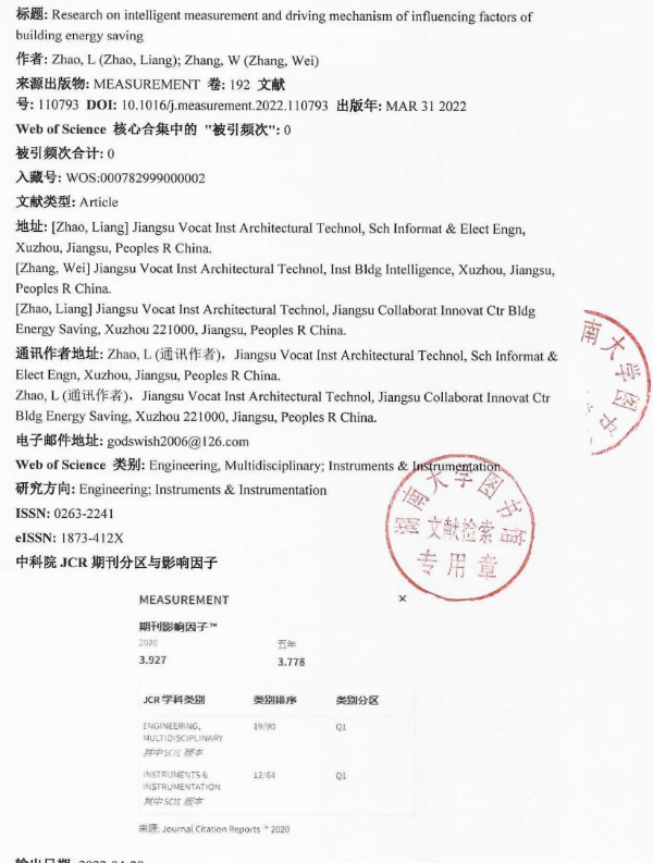 该论文是2021年江苏省高等公司自然科学重大项目“基于知识图谱的建设项目节能驱动机理及BIM 优化策略研究”的研究成果,项目研究已发表JCR 1区论文3篇,核心论文2篇,申报发明专利3件。赵亮副教授在相应方向发表一区论文《Research on intelligent measurement and driving mechanism of influencing factors of building energy saving》、《The track, hotspot and frontier of international hyperspectral remote sensing research 2009–2019》,申请住房与城乡建设部项目(基于BIM的交互式建筑信息模型研究)、江苏省高校自然科学重大项目(基于知识图谱的建设项目节能驱动机理及BIM 优化策略研究)、住房与城乡建设厅项目(利用 BIM 技术进行正向设计的若干关键问题研究)、徐州市科技项目(建设项目全生命周期节能驱动机制与优化策略研究)四项。