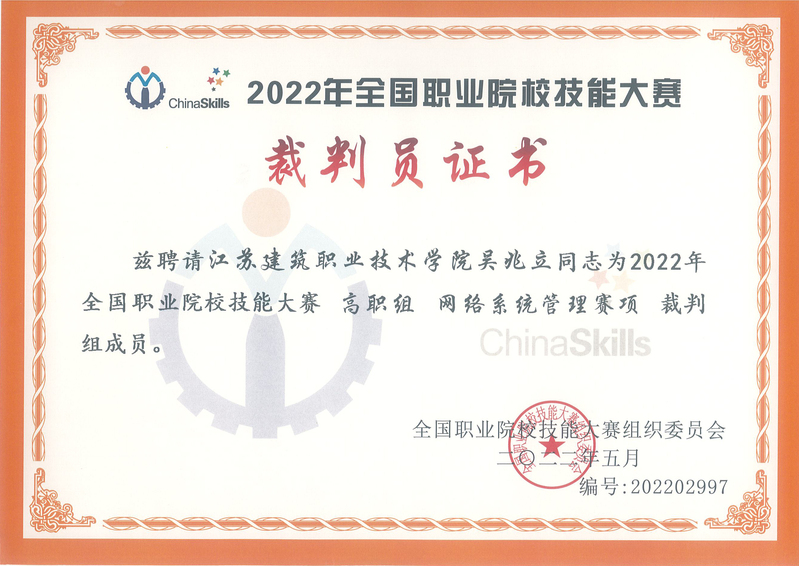 8月21日至26日,经理吴兆立和董爱民副教授受邀担任2022年全国职业院校技能大赛高职组网络系统管理赛项和中职组网络布线赛项赛项裁判,并圆满完成执裁任务。