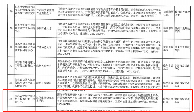 江苏省工程研究中心是区域自主创新体系的重要组成部分,坚持国家和全省战略需求导向,聚焦解决经济社会发展中的“卡脖子”技术难题,目标打造成为提升产业创新效率、推动创新链、产业链深度融合的科技力量。江苏省智能视觉识别与数据挖掘工程研究中心主要依托华为技术有限公司、上海商汤智能科技有限公司等国内头部企业,徐州市淮海服务外包职教集团和已有市工程研究中心、学会、行业协会,拥有国内一流的工程技术研究、开发、设计和试验的专业人才队伍,具有较完备的工程技术综合配套试验条件,能够提供多种综合性服务,同时具有自我良性循环发展机制的科研开发实体。获批后的省工程研究中心将围绕智能视觉识别、大数据深度挖掘关键技术研发与示范平台等问题,开展视觉识别算法在智能建造、智慧交通、智慧矿山等领域的应用和产业化探索,突破视觉大数据汇聚、智能视觉识别算法、智能目标检测算法等关键技术。