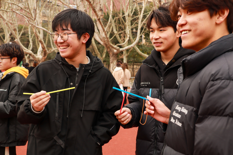 本次活动共设置“抛水瓶接力赛”、“袋鼠跳接力”、“盲人方阵”、“接力拼图”、“能量传递链”、“推手不倒翁”、“数字炸弹”、“趣味拔河”等八个兼具趣味性与挑战性的项目,涵盖团队协作、策略挑战与心理减压等多个维度。参加活动的同学纷纷表示:“这次活动不仅让我们释放压力,更感受到了团队支持的温暖。”