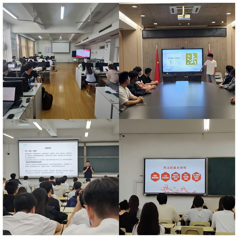 班会从弘扬宪法精神入手,引导员工认识宪法的根本法地位,明确公民的基本权利与义务,树立自觉尊崇宪法权威的意识。随后,聚焦校园常见法律风险,班主任通过剖析“校园霸凌”“帮信罪”等真实案例,深入浅出地讲解相关法律知识及后果,引导员工明确法律底线,增强明辨是非的能力。