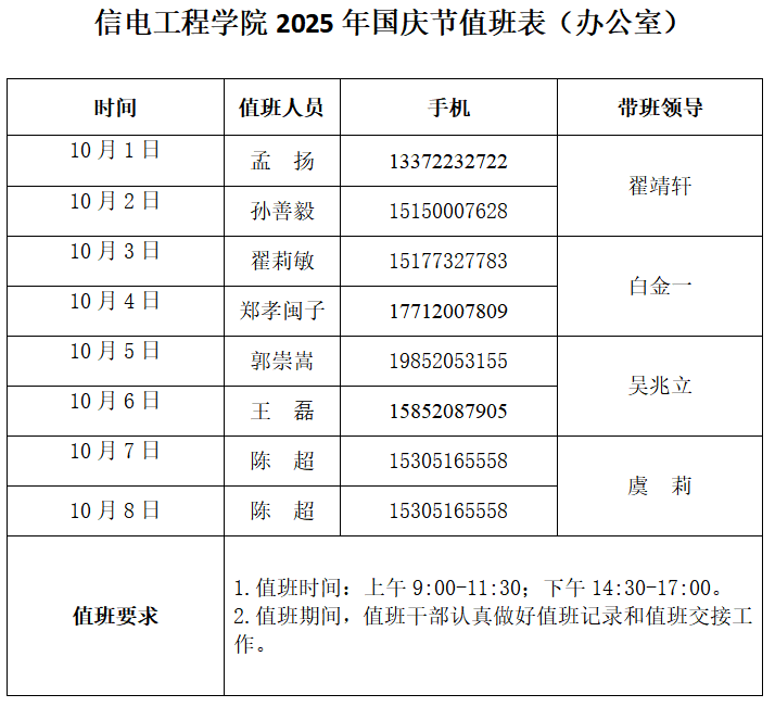 谈球吧2025年国庆节值班表