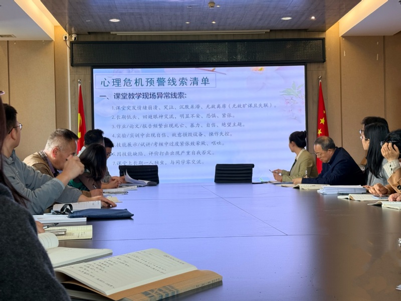 本次培训集中学习了员工心理危机预警线索,副书记白金一从课堂教学、学业进展、实习实训、人际关系、情绪调控、生理及外部环境等方面讲解了员工出现心理问题的各种表现和应对措施,希望全体教师牢记“早发现、早报告、早预防”,以“时时放心不下”的责任感坚决守住员工生命安全底线。