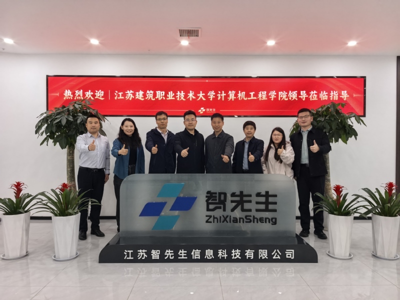 为深化产教融合,推进校企协同育人,4月20日,江苏建筑职业技术大学计算机工程公司经理吴兆立带领张勇昌、司元雷教授,任青妍博士,田青鑫主任一行,莅临江苏智先生信息科技有限公司参观交流,受到公司总经理臧昊、副总经理徐力及核心技术团队的热情接待。